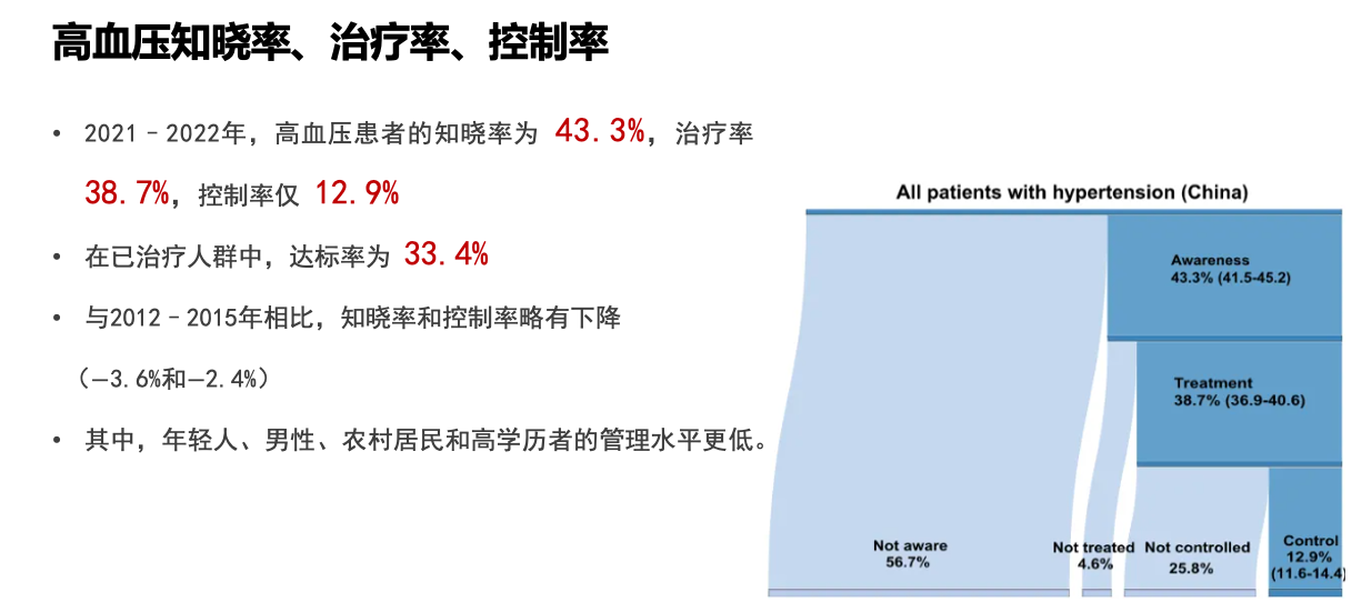 这种“测不准”的焦虑,进一步加深了我国陷入高血压管理 “知晓率低、治疗率低、控制率低”的“三低”困境——每100个高血压患者中,仅有约12人能将血压控制在正常范围内 。