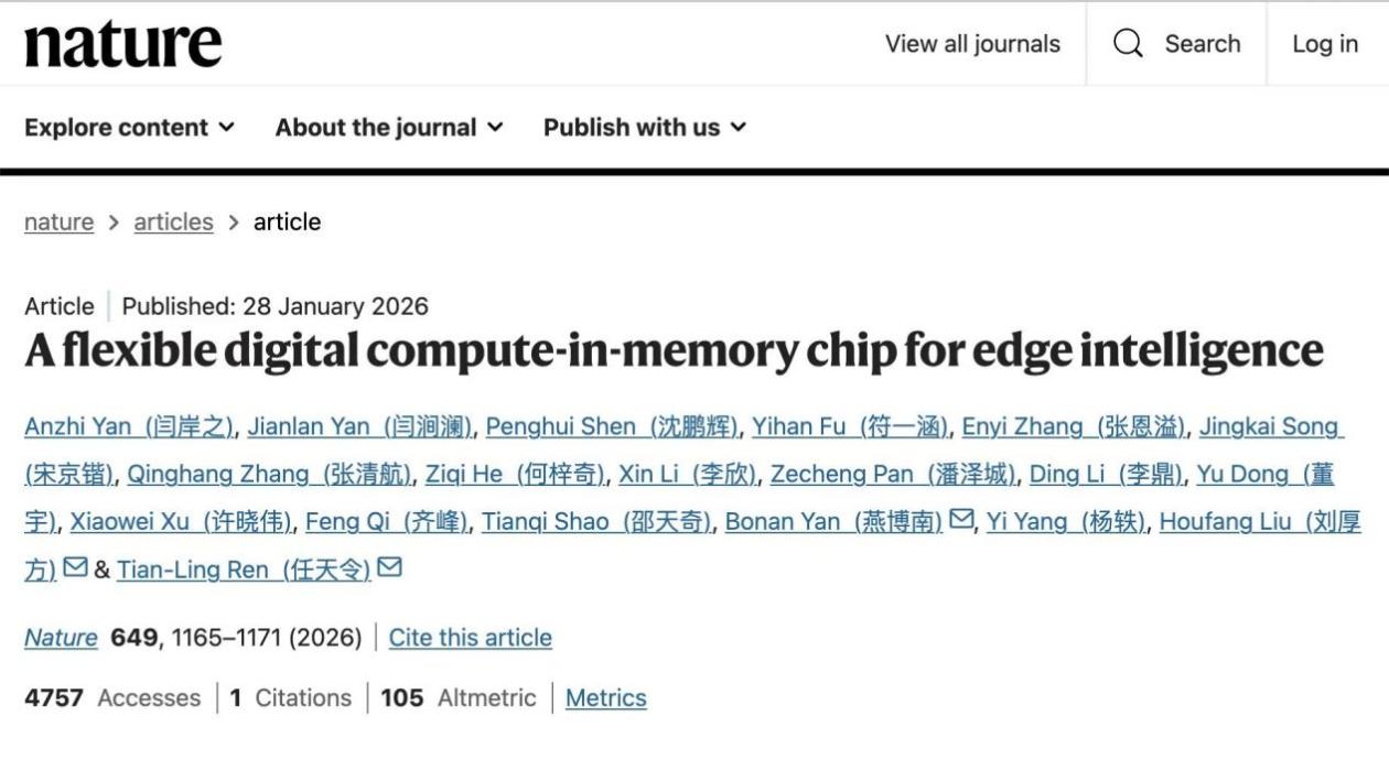 【环球网科技综合报道】2月10日消息,1月28日,清华大学联合北京大学与维信诺合作开发的世界首款柔性存算芯片——FLEXI,在国际顶级期刊《自然》(Nature)上发表。这标志着我国在柔性电子与边缘人工智能硬件领域取得重要突破,填补了高性能柔性AI计算芯片的技术空白,为下一代智能硬件开启了无限可能。